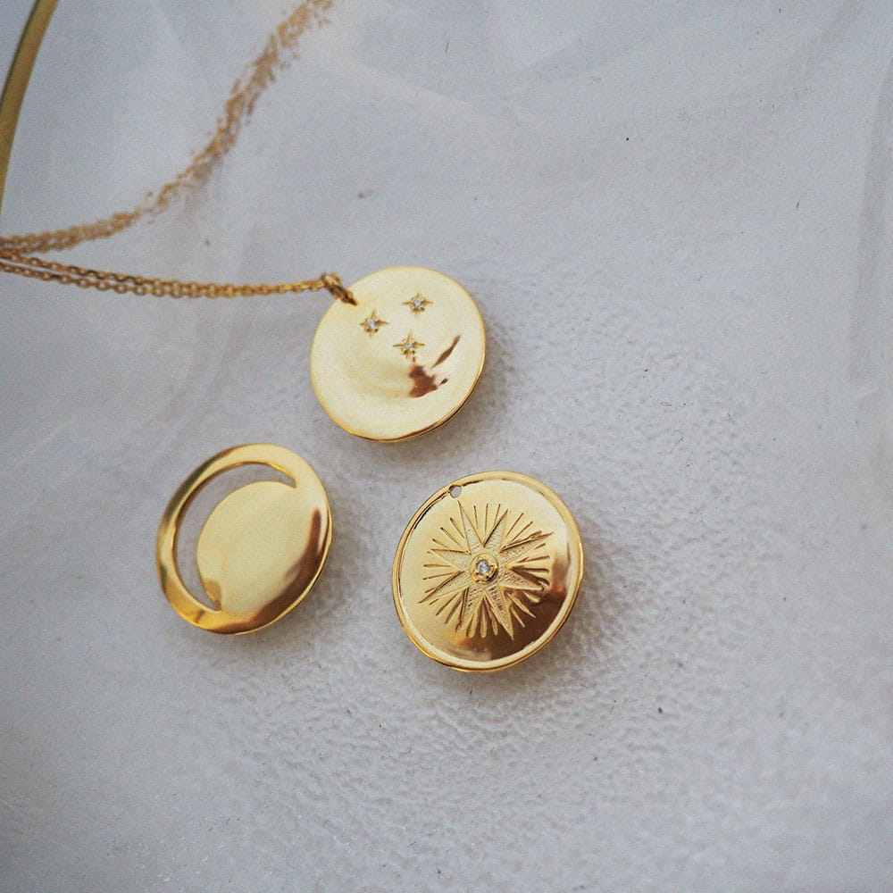 Połączenie elegancji i symboliki. Księżyc i Słońce symbolizują równowagę, harmonię i jedność przeciwieństw.