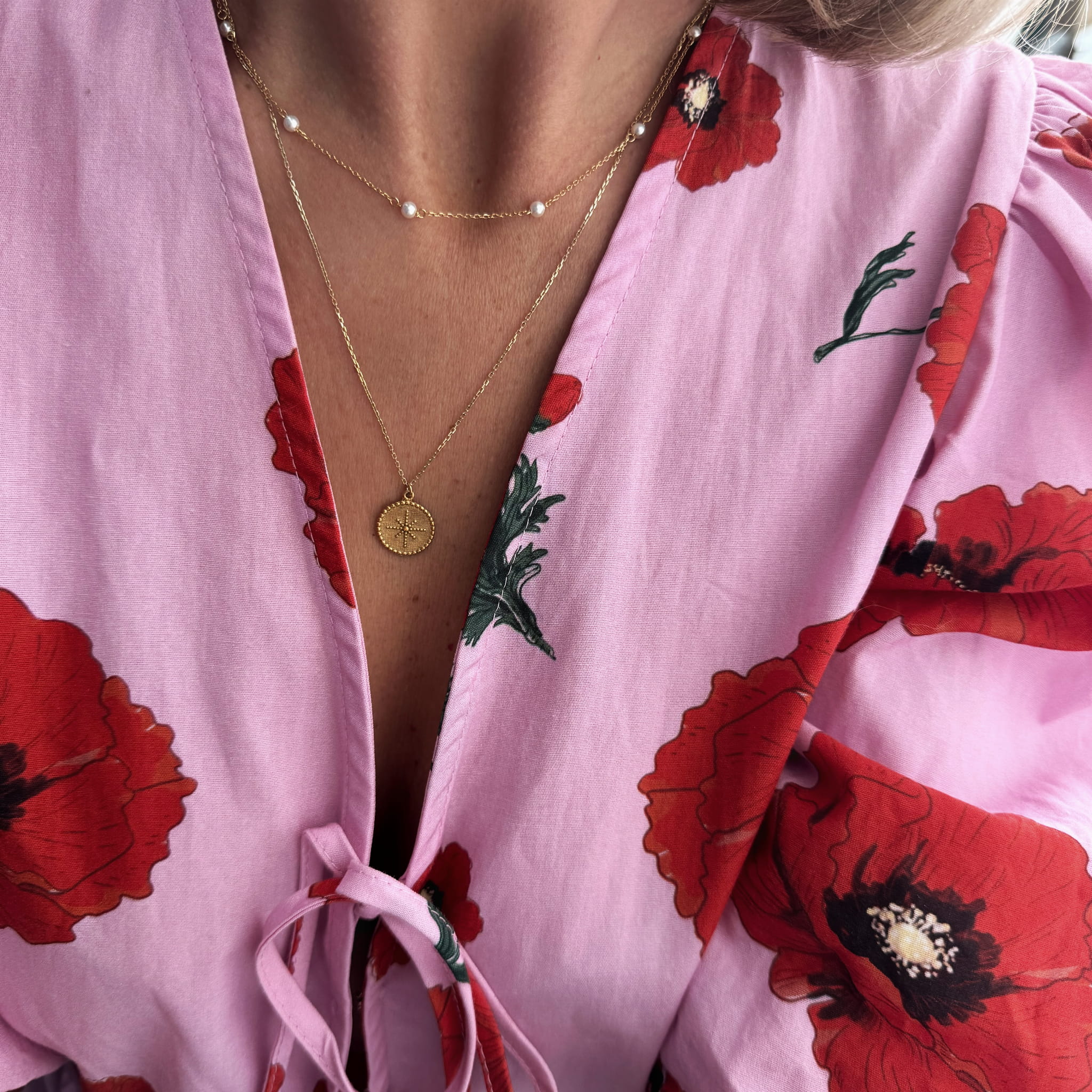Delikatny naszyjnik z perłami słodkowodnymi wykonany ze srebra pr. 925 złoconego 24k złotem.
