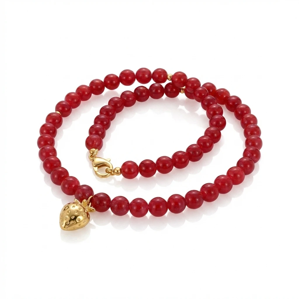 Naszyjnik Jadeit z truskawką