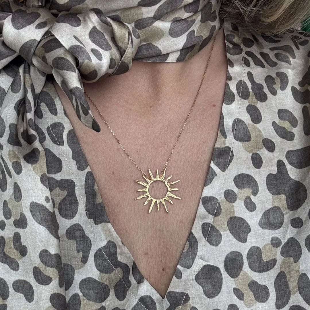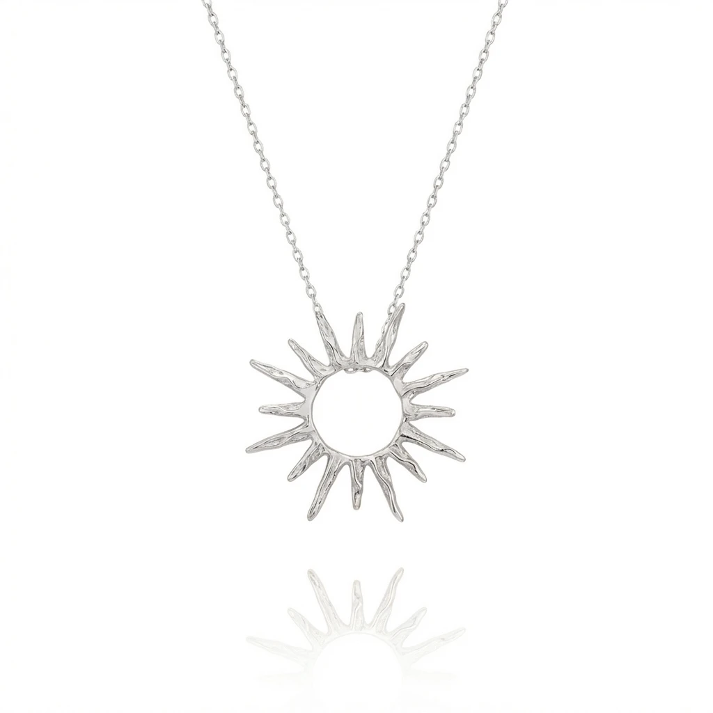 Delikatny naszyjnik z zawieszką w kształcie słońca to ponadczasowy dodatek, który podkreśli Twoją kobiecość i naturalny blask. Wykonany ze srebra próby 925, zachwyca minimalistyczną formą oraz precyzyjnym wykończeniem.