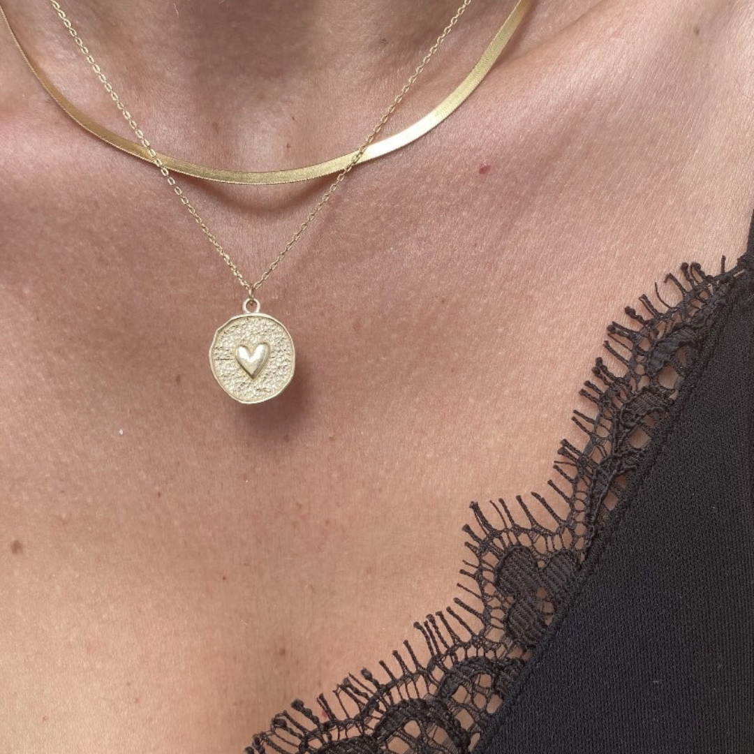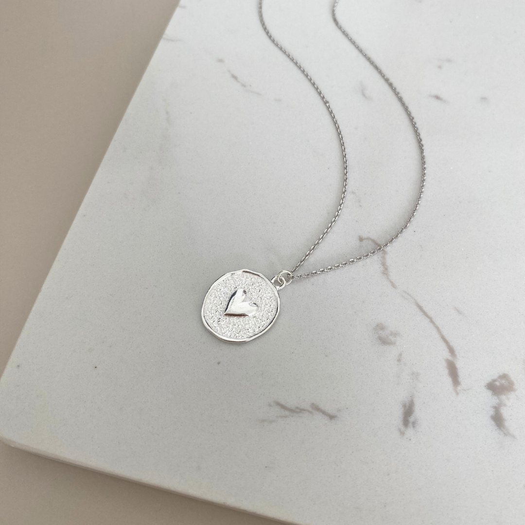 Naszyjnika z nieregularną blaszką z uroczym serduszkiem. To połączenie nowoczesności i delikatności.